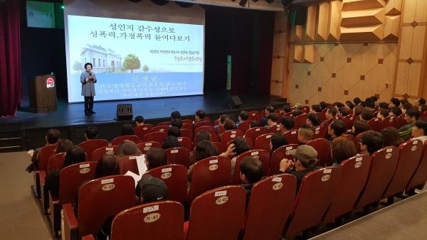 이번 교육은 한국양성평등교육진흥원 폭력예방통합교육 전문 강사를 초청해 “성인지 감수성으로 성폭력, 가정폭력 들여다보기.”라는 주제로 성에 대한 감수성을 높이는 성인지 교육과 디지털 성범죄에 대한 다양한 실제 사례를 중심으로 쉽고 현실감 있는 교육을 진행했다.