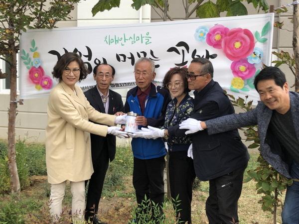 하남시는 25일 치매안심마을인 미사강변 13단지에서“기억이 머무는 꽃밭”제막식과 타임캡슐 묻기 행사를 진행했다.