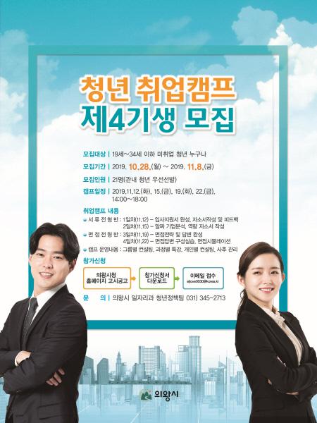 의왕시는 청년 취업 준비생들의 취업 성공을 돕기 위한 ‘의왕시 청년 취업캠프’ 제4기생을 모집한다.