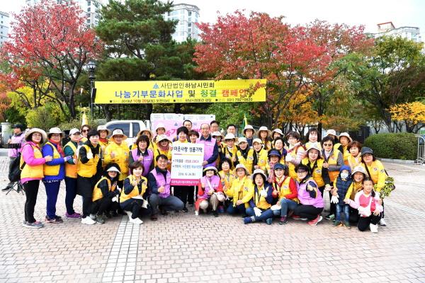 하남시민회가 지난 26일 시청 광장에서 열린‘나눔기부문화행사 및 청결캠페인’에서 하남시에 5만 원 상당의 생필품 박스 80개를 기탁했다.