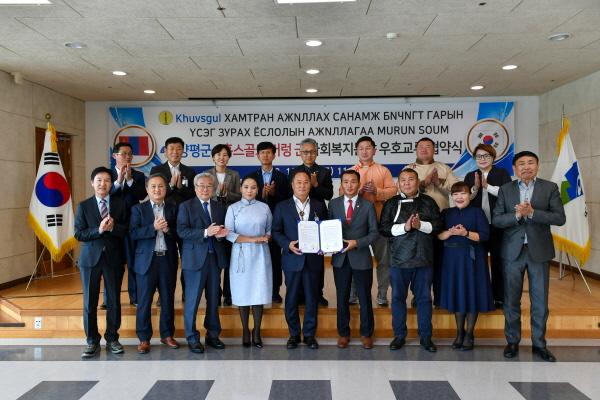 양평군과 몽골 홉스골도 머렁군은 지난 25일 군청 대회의실에서 ‘사회복지분야 우호교류 협약’을 체결하고, 정동균 양평군수와 바타르 바트바야르 머렁군 부군장이 함께 협약서에 서명하며, 사회복지분야의 상호발전과 교류 협력을 강화해 나가기로 했다.