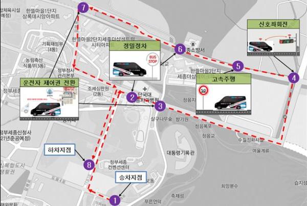 시연은 총 9회 진행되며, 버스정류장 정밀정차, 제어권전환을 통한 회전교차로 통과, 통신을 통한 교통신호정보 수신, 스마트폰을 활용한 버스 승·하차 기술을 선보인다.