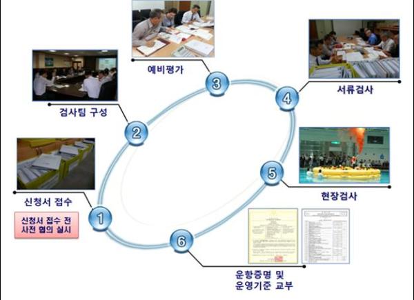항공기 운항에 필요한 조종, 정비, 객실, 운항관리, 위험물 운송 관련 규정·매뉴얼 등이 법령을 충족하는지 확인했고, 50시간이 넘는 시범비행을 통해 악기상, 항공기 고장 등 비정상 상황별 조종사의 대처능력, 비상착수와 승객탈출 모의평가, 예비부품의 확보상태, 취항예정공항 운항 준비상태 등을 현장 확인했다.