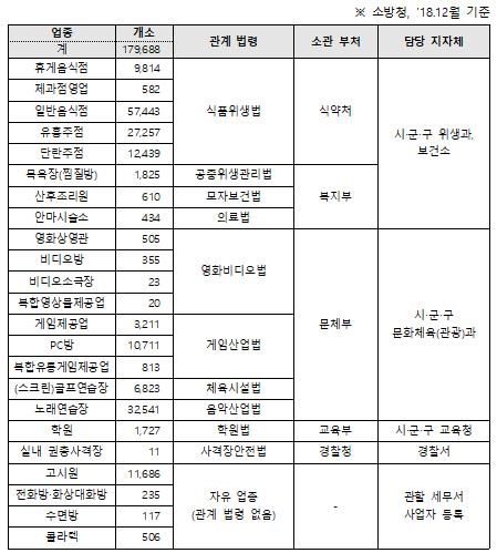 행안부는 다양한 신종 다중이용업소 중에서도 최근에 사고가 발생했거나 화기 취급 및 음주 허용 등의 영업형태를 가지고 있어 사고발생 가능성이 있는 감성주점, 스크린 체육시설, 방탈출카페 등을 중점 조사 대상으로 선정했다.