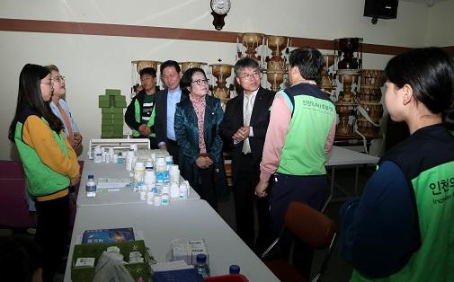 이번 봉사활동은 인천의료사회봉사회 소속 의료진과 자원봉사자의 도움으로 내과, 가정의학과, 정형외과, 피부과, 비뇨기과, 안과, 이비인후과, 한방과 등 다양한 분야의 진료가 실시됐으며, 혈압검사 ,초음파검사, 골밀도검사, 심전도 검사와 함께 진료상담이 실시됐다.