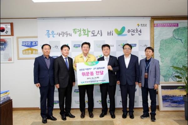 한국국토정보공사 경기지역본부장은 지난 24일 연천군을 찾아 아프리카 돼지열병 확산에 따른 연천군민의 고충을 위로하기 위해 위문품을 전달했다.