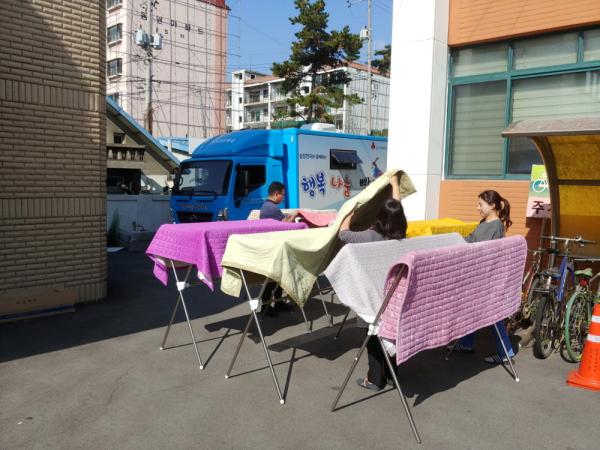 고양시 덕양구 성사1동 행정복지센터는 지난 24일 이동세탁차량을 이용해 관내 장애인 가구를 대상으로 빨래 봉사를 했다. 이동세탁차량은 드럼세탁기 4대가 탑재된 2.5톤 트럭으로, 주로 어르신과 장애인에게 부피가 큰 이불 빨래 서비스를 제공한다.