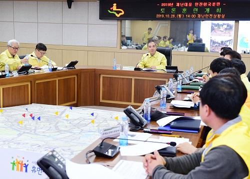 훈련은 김용덕 수원시 안전교통국이 주재한 상황판단회의, 조무영 수원시 제2부시장이 주재한 ‘2019 재난대응 안전한국훈련’ 순으로 진행됐다.