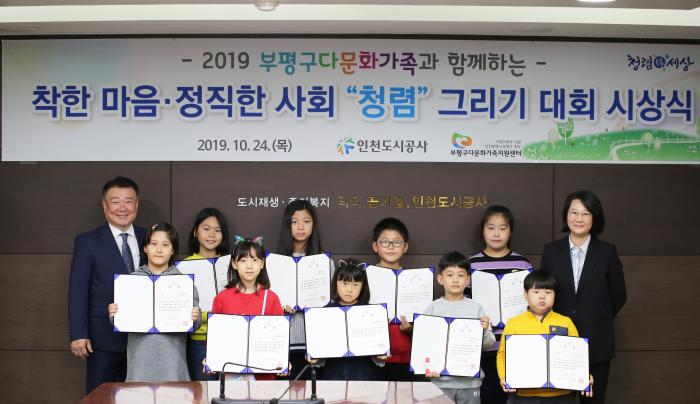 인천도시공사(사장 박인서)는 지난 24일 ‘2019년 부평구다문화가족과 함께하는 착한마음・정직한 사회 청렴 그리기 대회’(주최: 인천도시공사, 주관: 부평구다문화가정센터) 시상식을 개최했다고 밝혔다.