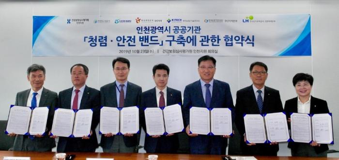 이날 인천지역 7개 공공기관(인천도시공사, 건강보험심사평가원 인천지원, 인천환경공단, 한국관광공사 경인지사, 한국생산기술연구원 뿌리산업기술연구소, 한국승강기안전공단 경인지역본부, 한국토지주택공사 인천지역본부)은 청렴・안전업무 협력체계 구축을 위한 협약을 체결하고, 지역 내 청렴안전 문화 확산과 제도발전에 기여할 것을 다짐했다.