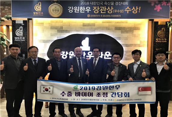 강원도와 강원한우조합공동사업법인은 지난 28 춘천 일원에서 강원도, 조공법인, 춘천철원축협, 고려무역 관계자 등 10여명이 참석해‘강원한우 싱가포르 수출을 위한 바이어 초청 행사’를 개최했다고 밝혔다.