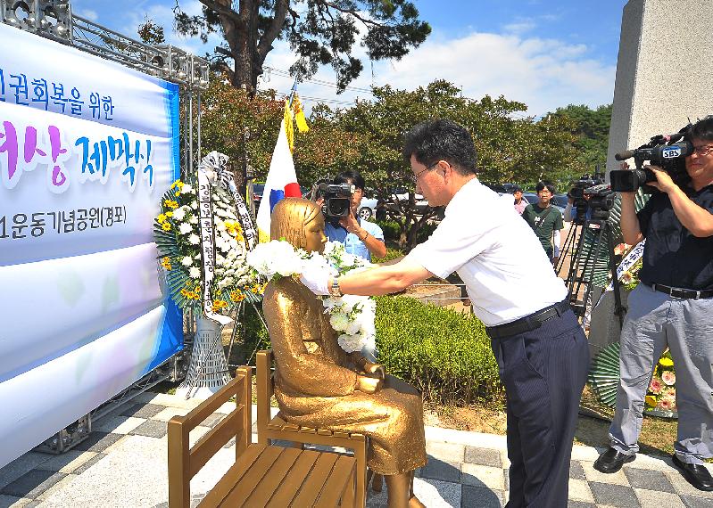 이와 관련하여 강릉시에서는 일제하 일본군위안부 피해자에 대한 생활안정 지원 및 기념사업 등에 관한 법률과 2015년 여성가족부 운영지침에 의한 기념사업으로 평화의 소녀상을 경포 3·1운동 공원 내에 청동재질로 제작해 오는 5일 제막식을 개최한다.