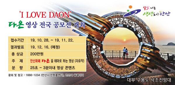 안산시는 골목경제를 살리는 지역화폐에 대한 시민들의 관심을 높이고 참신한 홍보 콘텐츠 발굴을 위해 ‘I LOVE DAON 다온 영상 전국 공모전’을 개최한다고 29일 밝혔다.
