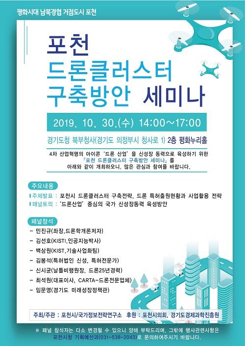 포천시는 오는 30일 경기도북부청사 2층 평화누리홀에서 ‘포천시 드론클러스터 구축방안 세미나’를 개최한다.