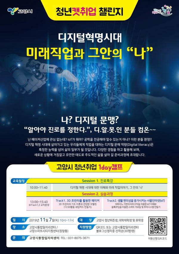 고양시 관계자는 “한 번의 교육으로 해당 산업을 이해시키거나 그 분야로 진로 결정을 유도하고자 함이 아니다, 산업기반과 기술 구조를 이해하고 활용하는 다양한 디지털 경험을 통해 새로운 상황에 거침없고 유연한 태도로 주도적인 삶을 살아가도록 하는 게 이번 프로그램의 목적이다”고 기획 의도를 밝히며 청년들이 관심을 가지고 참여할 것을 당부했다.