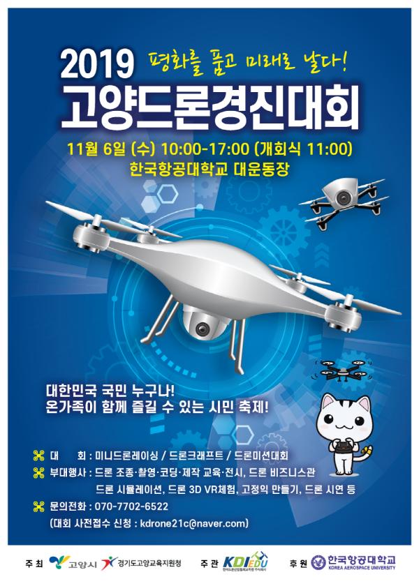 고양시는 오는 11월 6일 한국항공대학교 대운동장에서 ‘2019 고양드론경진대회’를 개최한다고 밝혔다.
