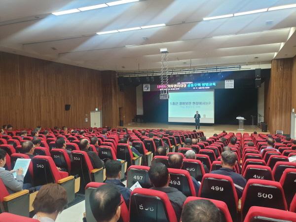 이날 교육은 LH중앙공동주택관리지원센터 주관으로 진행됐으며 주요내용은 공동주택단지 내 범죄 및 방범실태 이해, 경비보안활동 사항, 방범활동과 민원 응대법, 범죄예방활동 등에 관한 사항으로 진행됐다.