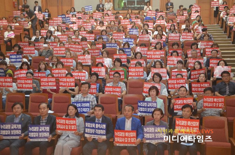 또 "대통령은 약속을 이행하고 보육과 유·초·중등교육을 정상화 시켜라!, 박 대통령이 당초 약속한 누리과정 예산은 중앙정부 국가가 즉각 추경경정예산에 편성해 전국 지역교육청에 신속히 지원하라!(보육교사 처우개선비, 보조교사 인건비 등)"고 요구했다.