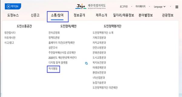 제주특별자치도는 “적극행정 문화 확산에 대한 도민 공감대를 높이고 도민의 의견 수렴을 위해 제주자치도 홈페이지 내 적극행정 코너를 개설해 10월부터 본격 운영하고 있다”고 밝혔다.