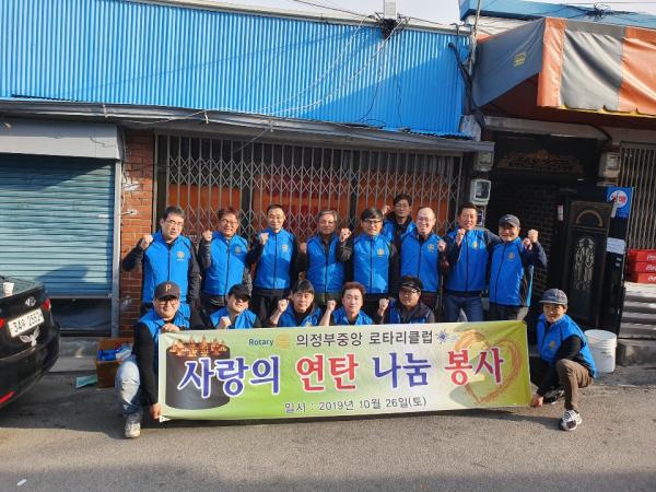 의정부중앙 로타리클럽은 10월 26일, 송산1동의 저소득 독거노인 2가구에 직접 방문해 연탄 1000장을 전달했다.