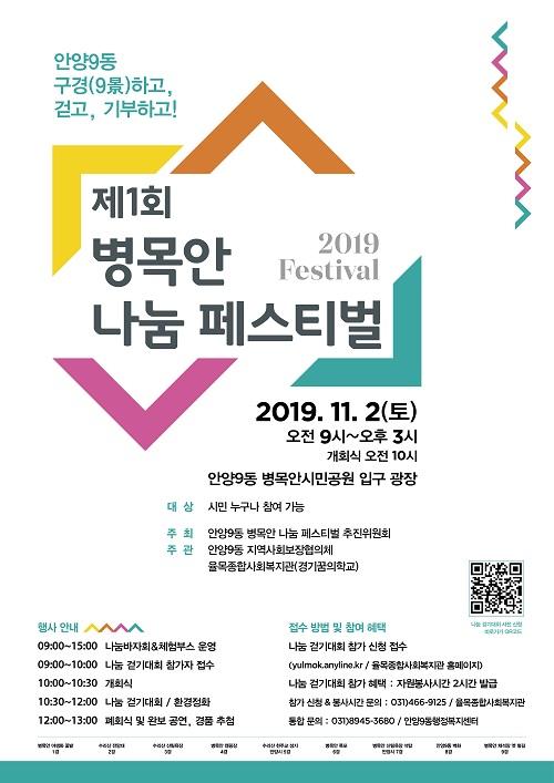 가을단풍을 만끽하며 기부도 하는 제1회 병목안나눔페스티벌‘안양9동 구경하고, 걷고, 기부하고’가 주말인 오는 11월 2일 안양9동 병목안시민공원 하단 부 광장에서 열린다고 안양시가 밝혔다.