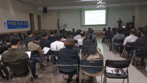 이번 교육은 의사, 약사 등 신규 마약류취급자로 허가 또는 지정 받은 후 1년 이내 교육을 이수해야하는 필수 교육대상자 뿐만 아니라, 기존 마약류취급자들도 교육에 참석해 마약류 관리에 관한 법률 개정에 따른 마약류취급의 보고 변경사항 등에 대한 교육을 이수했다.