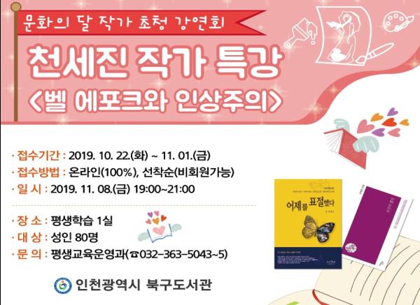 인천북구도서관은 오는 11월 08일 작가초청 강연회로 ‘벨 에포크와 인상주의’를 진행한다.