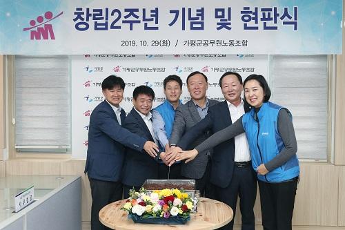 가평군공무원노동조합은 지난 29일 군청 본관 3층 새롭게 이전한 노조사무실에서 창립2주년 기념 및 현판식을 개최했다.