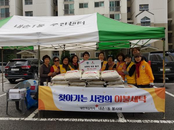 이날 내손1동 봉사회는 관내 내손주공아파트 광장에서 15채의 이불을 손수 수거해 깨끗하게 세탁했다.
