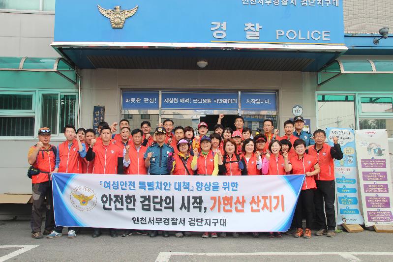 [미디어타임즈=문상수 기자]반병욱 인천서부경찰서장은 지난 25일 인천검단지구대에서 검단주민을 대상으로 여성안전을 위한 특별치안대책의 일환으로 ‘가현산 산지기’를 발대했다고 밝혔다. 이날 발대식에는 검단 지역주민으로 구성된 회원 30여명이 참석하여 최근 등산로에서 여성들의 안전을 위협하는 강력사건들이 잇따라 발생하여, 이에 검단지구대에서는 검단지역주민들과 함께 가현산의 안전을 지키기 위해 산을 지키고 보살핀다는 산지기의 어원에 맞춘‘가현산 산지기’를 발대하였다. ‘가현산 산지기’는 둘레길 수시 순찰 및 월 1회 정기 순찰을 통해 가현산을 이용하는 주민들과 접촉하면서 ‘가현산 산지기’의 홍보 및 가현산의 안전을 지켜나갈 예정이다.