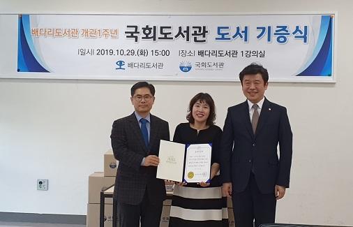 이번 도서 기증은 유의동 국회의원이 국회도서관과 배다리도서관을 연결해 이뤄졌으며 기증식에는 유의동 국회의원, 박선춘 국회도서관장 직무대행, 박옥주 국회도서관 정보봉사국장 등이 참여했다.