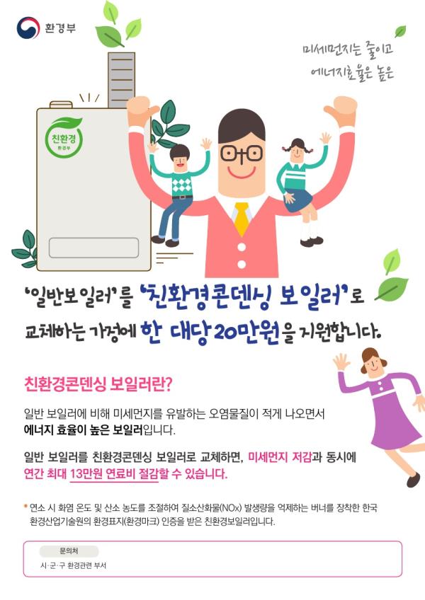 이병기 의정부시 환경정책과장은 “2020년부터 저녹스보일러 설치 의무화가 시행 예정인 만큼 일반보일러를 친환경보일러로 교체해 연료비도 절감과 대기오염물질 저감을 통한 쾌적한 대기환경 조성에 시민들의 많은 관심과 참여를 부탁드린다”고 당부했다.