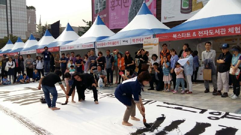 선포식의 의미를 더욱 빛내 준 캘리그래피 퍼포먼스도 진행됐다. 강병인 캘리그래퍼의 주도로 책을 사이에 두고 세대와 세대가 어울려서 책 문화를 완성하는 ‘아주 특별한 책의 도시 고양 캘리그래피 퍼포먼스’를 펼쳐 시민들의 큰 박수를 받았다.