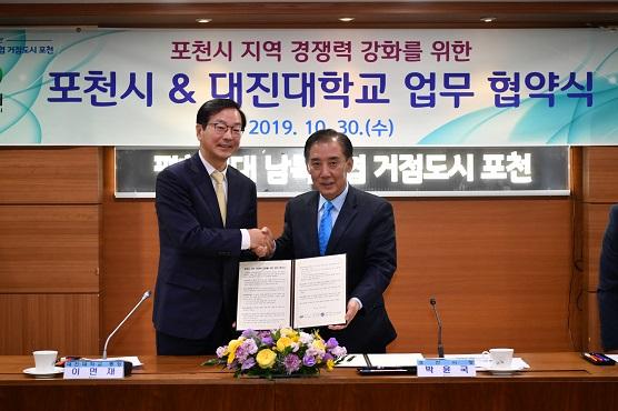 포천시는 30일, 포천 지역 주민의 전문교육 강화를 위해 대진대학교와 ‘포천시 지역 경쟁력 강화를 위한 업무 협약’을 체결했다고 밝혔다.