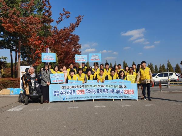 참가자들은 장애인주차구역 불법주차 신고가 가장 많이 들어오는 곳인 에버랜드 입구와 장애인주차장 등에서 피켓을 들고 홍보물을 나눠주며 장애인 주차구역 준수를 당부했다.
