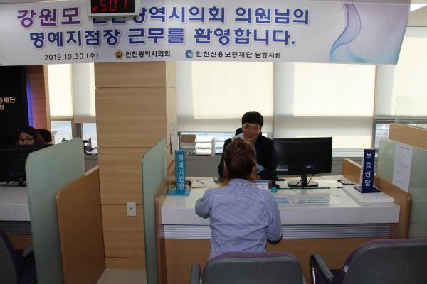 인천신용보증재단이 30일 인천시의회 강원모 의원을 재단 남동지점 일일 명예 지점장으로 위촉하고, 지역 소상공인 보증상담과 간담회를 진행했다고 밝혔다.
