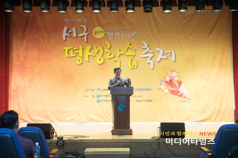 [미디어타임즈=문상수 기자]인천시 서구(강범석 서구청장)는 지난 10월 1일부터 2일까지 화합과 학습의 축제 “2016 제1회 인천서구 평생학습축제”를 성황리에 개최하였다. 이번 행사는 ‘평생학습이 전하는 2일간의 행복Dream!' 이라는 주제와 ‘Lifelong Learning is Good!, 평생학습이 좋다!’라는 슬로건으로 40여개 평생학습 기관·단체, 동아리, 주민자치센터, 구민 등 개막식과 평생학습 체험관에 1만 여 명이 관람·참여하였다.