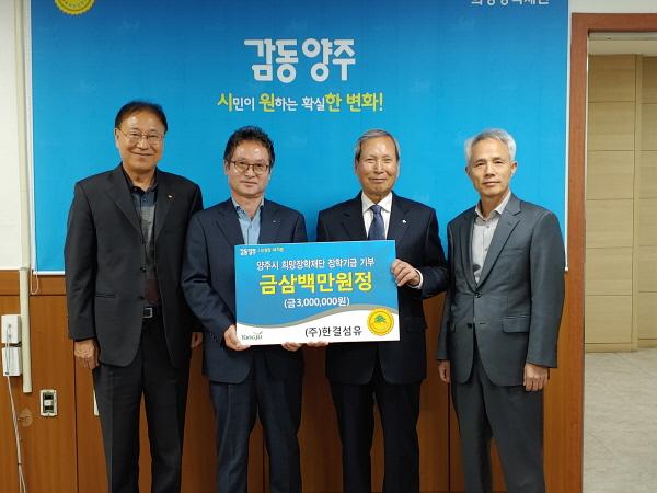 양주시 희망장학재단은 지난 29일 고암동 소재 희망장학재단 사무국을 찾은 백석농업협동조합과 한결섬유에서 각각 삼백만원의 장학기금을 기부했다고 밝혔다.