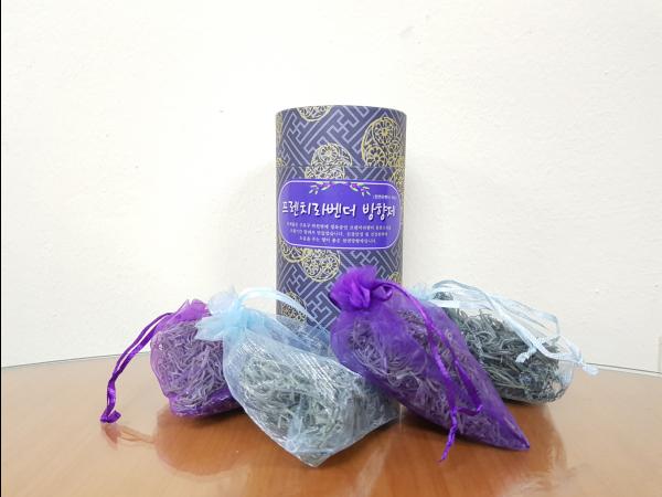 이를 위해 라벤더의 꽃봉오리를 채취해 불순물을 제거하고 건조와 분쇄 작업을 실시했다. 이후 중금속 오염 등 유해성 검사 과정을 거쳐 상태가 양호한 개체를 선별해 300여개의 방향제를 완성했다.