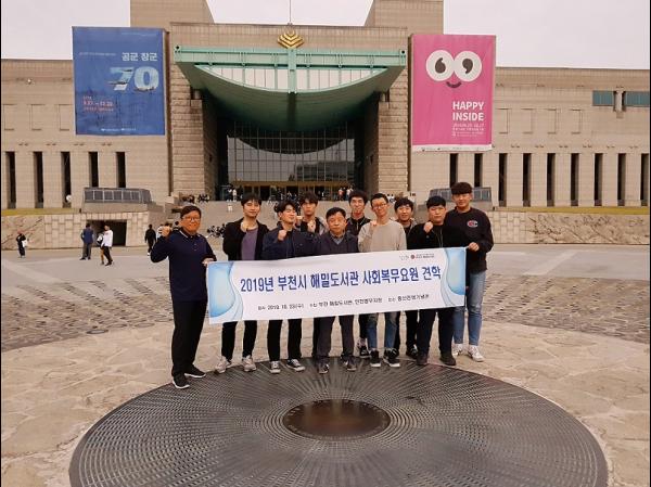 부천해밀도서관은 지난 23일 해밀도서관 사회복무요원담당 사회복지사, 인천병무지청 복무지도관, 사회복무요원 등 11명과 함께 용산 전쟁기념관과 한국방송공사를 방문해 안보견학을 했다고 밝혔다.