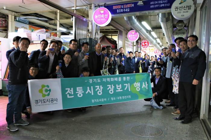 이번 행사는 대표적인 경기도 대표정책인 지역화폐를 사용해 전통시장의 활성화 및 지역경제 활력을 불어넣고자 마련된 것으로, 이헌욱 사장 등 임직원 50여명이 참여했다.