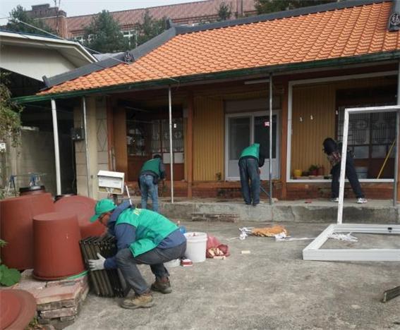 이날 회원들은 다가오는 겨울 추위에 대비해 우산동 거주 소외계층 가구의 창호를 교체했다.