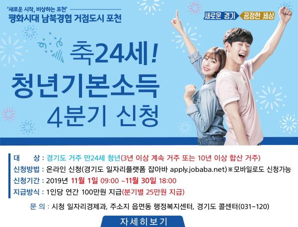 포천시는 지난 10월 청년기본소득 3분기 지급에 이어 오는 1일부터 4분기 신청·접수를 시작한다.