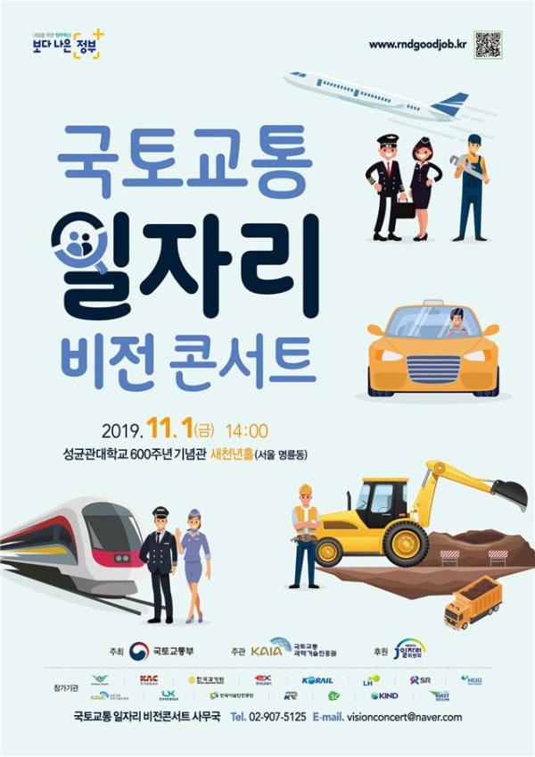 국토교통부는 1일 성균관대학교 600주년 기념관 새천년홀에서 취업준비생, 구직자, 학생들을 직접 만나 국토교통 일자리의 새로운 비전과 방향에 대해 대화와 소통을 나누는 ‘국토교통 일자리 비전콘서트’를 개최했다.