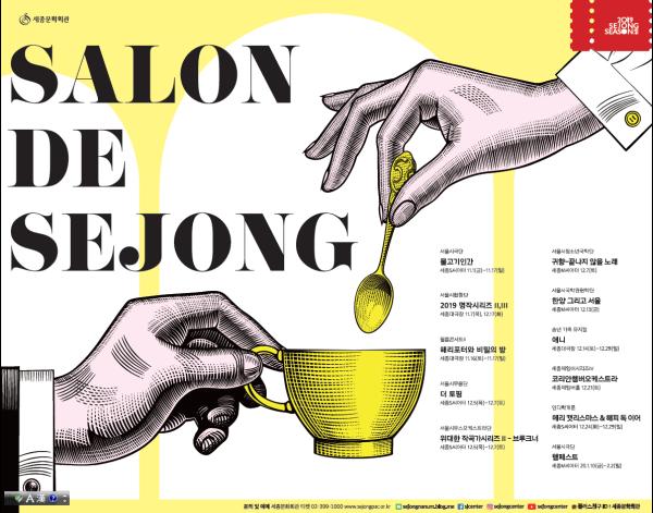 ‘Salon de Sejong’은 소중한 사람들과 품격 있는 가을, 뜻깊은 연말을 보낼 수 있도록 세종문화회관이 직접 기획·제작한 공연을 선보이는 자리이다. 뮤지컬, 클래식, 연극, 무용 등 다양한 공연과 함께 이벤트를 마련해 시민들에게 보다 다양한 문화 체험 기회를 제공한다.