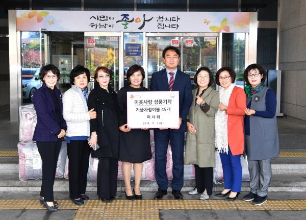 미사회는 1일 하남시청 현관에서 하남시에 300만원 상당의 겨울차렵이불 45개를 전달하는 기탁식을 가졌다.