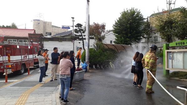 합동훈련은 동 청사 화재발생 시 최초 화재발견자가 따라야할 신고절차, 직원대피 및 피난유도, 초기대응 방법 등 생명과 안전을 지키기 위한 내용으로 진행했으며 특히 자위소방대원들이 반별임무 시연을 통해 임무숙지와 실제상황에서 대처할 수 있는 수행능력 향상에 중점을 두고 실시했다.