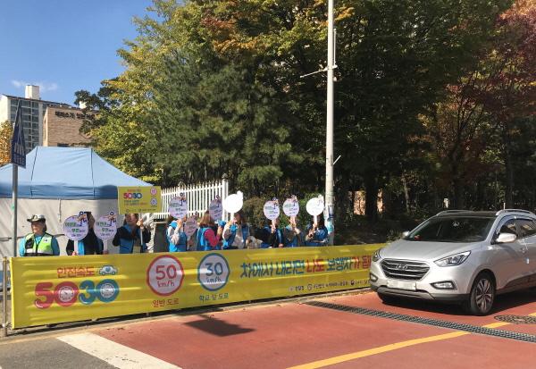 특히 녹색어머니회 회원들이 풍무초등학교 학생들의 안전한 하굣길을 지도하며 교통안전 홍보를 위해 ‘스쿨존, 일단 멈춤 서행하세요’ 등의 현수막과 함께 정지선 지키기 활동을 펼쳐 눈길을 끌었다.