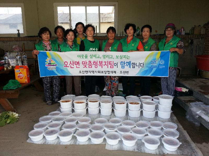 이날 부녀회원들은 오산면 맞춤형복지팀과 지역사회보장협의체 위원 및 복지통장들이 발굴한 복지사각지대 대상자와 밑반찬을 만들기 어려운 관내 홀몸어르신 가구 32세대를 가정방문하여 반찬을 전달하고 말벗이 되는 소중한 시간을 가졌다.