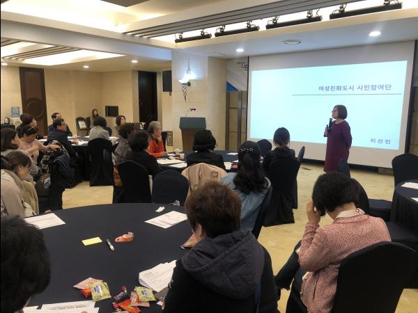 의정부시는 지난 10월 30일 장암 아일랜드 캐슬 에메랄드 홀에서 여성친화도시 서포터즈 여의주 회원 50여명을 대상으로 ‘2019년 여성과 가족이 행복한 여성친화도시 조성을 위한 여의주 워크숍’을 실시했다.